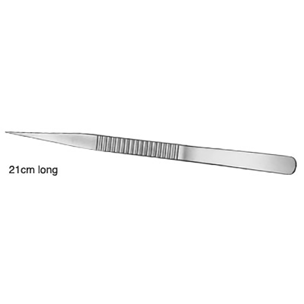 Forceps, 21cm long, Flat Handle 9mm Wide, Straight Tip 0.3mm diameter