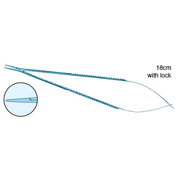 Jacobson Micro Ndl. Hld. (Titanium) 18cm long, with Lock, Flat Handle Straight Smooth Jaw 0.8mm Tip diameter