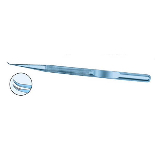 Microlite Titanium Counter-Balanced Needle Holder Forceps, 18cm Long, Round Handle 8mmd, Curved Tip 0.5mm with Tungsten Carbide Tying Pltfm