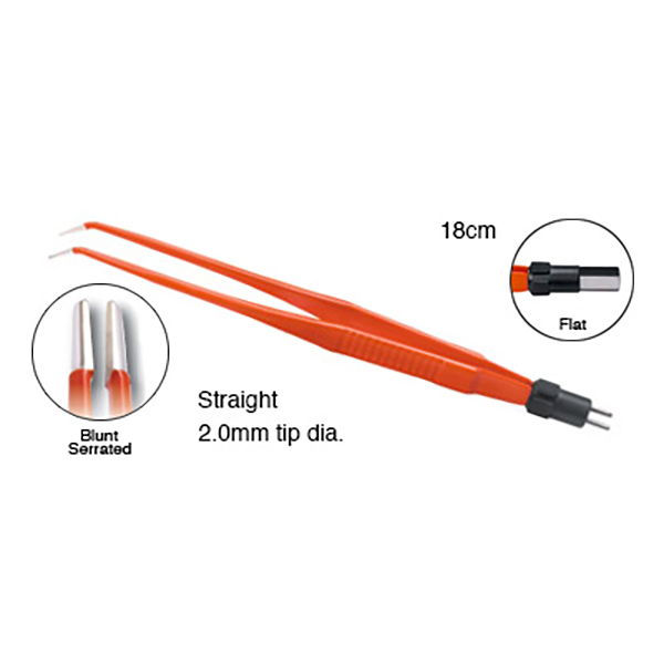 Bipolar Forceps Non Stick 18cm Straight, Straight blunt serrated tip 2.0mm