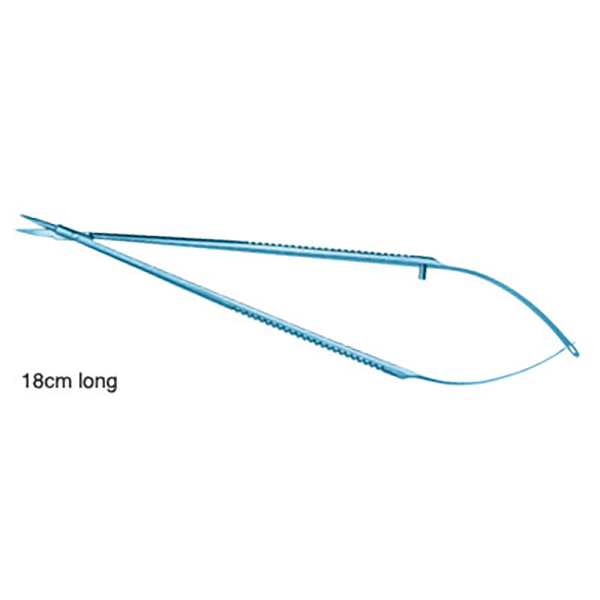 Vannas Scissors (Titanium) 18cm Flat Handle 9mm Wide, Straight Blades 13mm long
