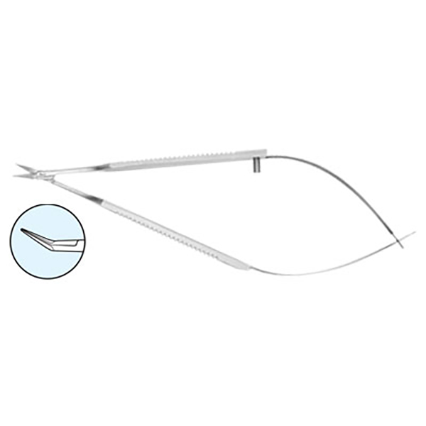Vannas Scissors 12cm Straight, Angled on flat with wide flat handle